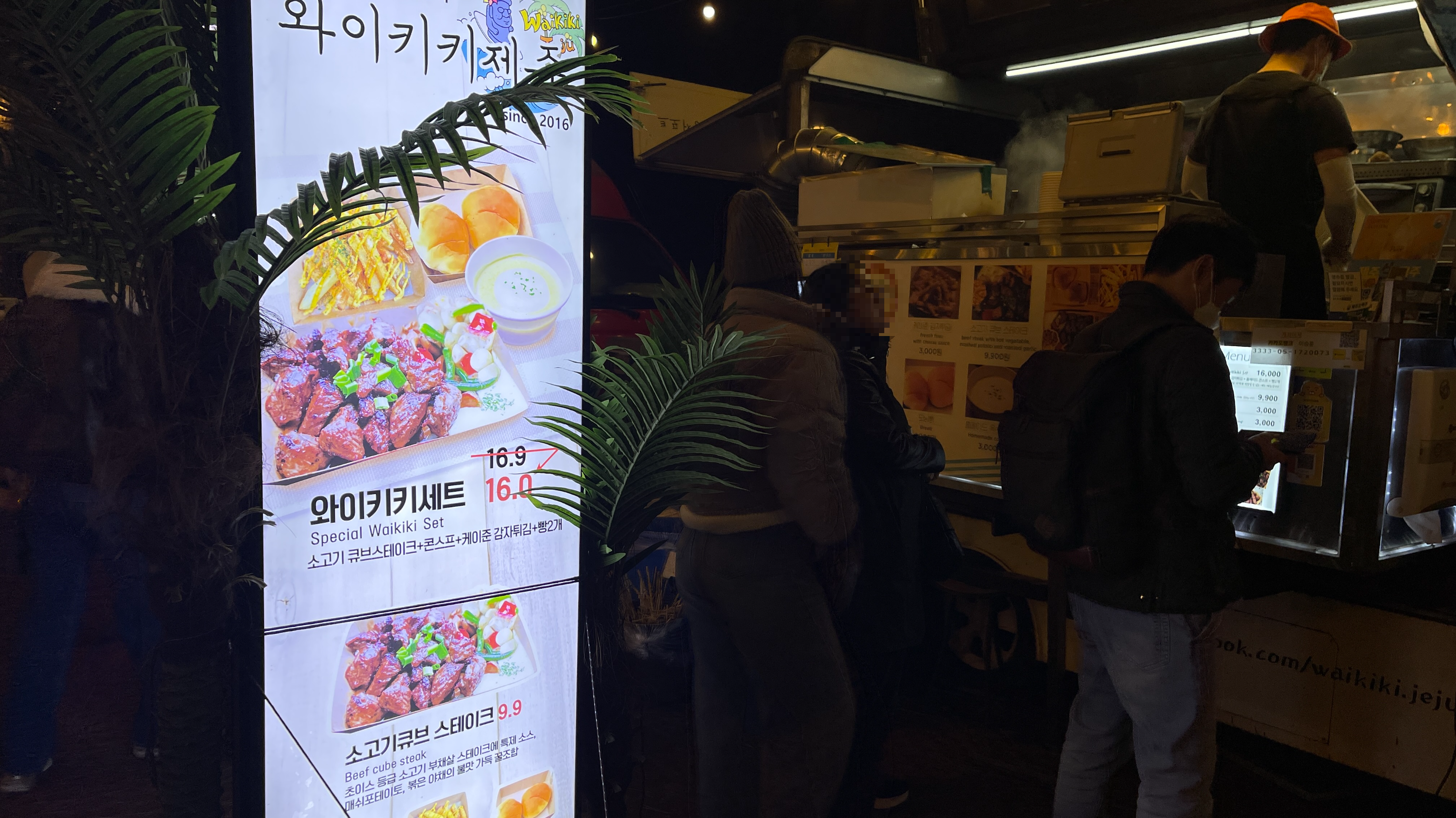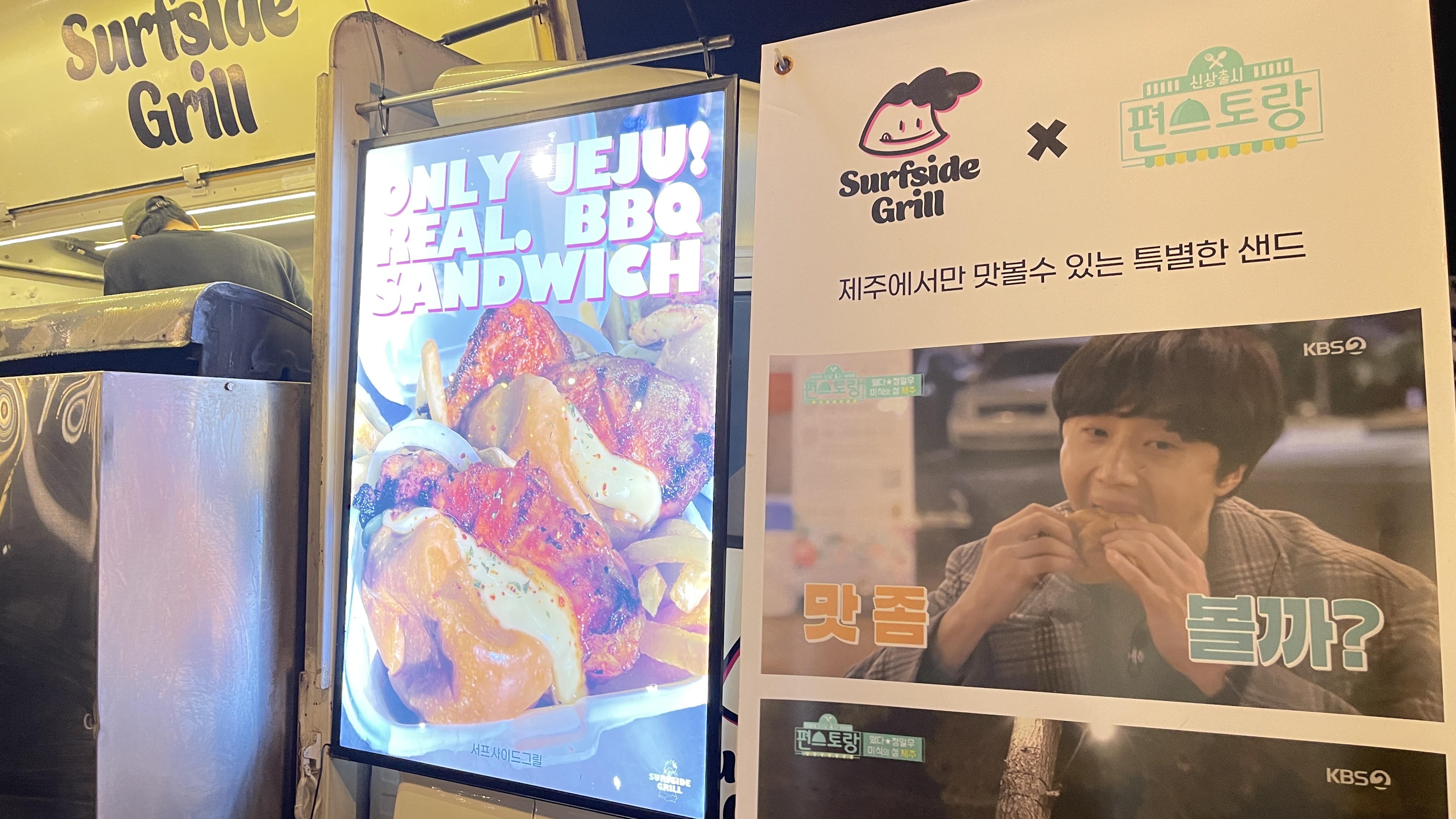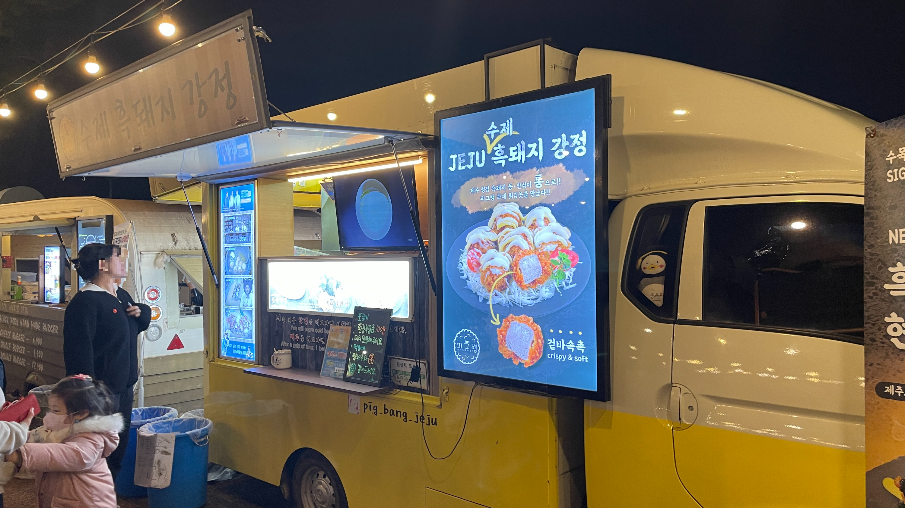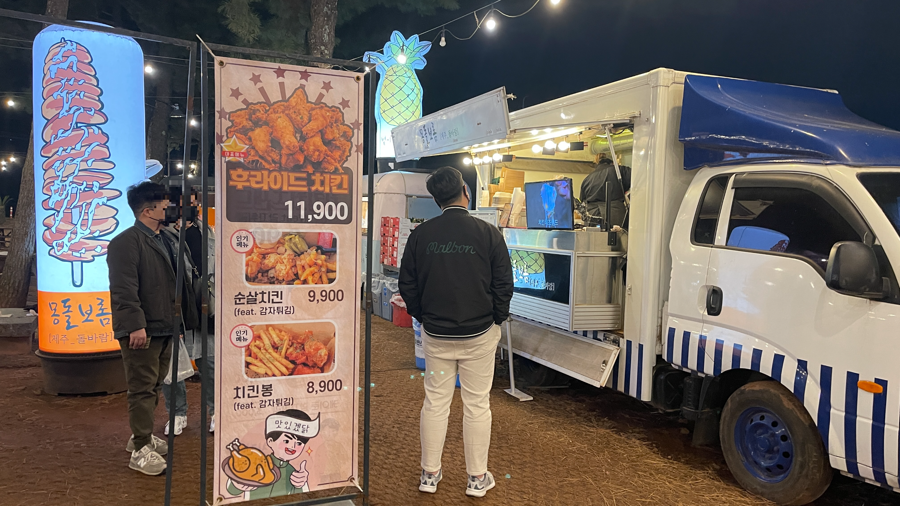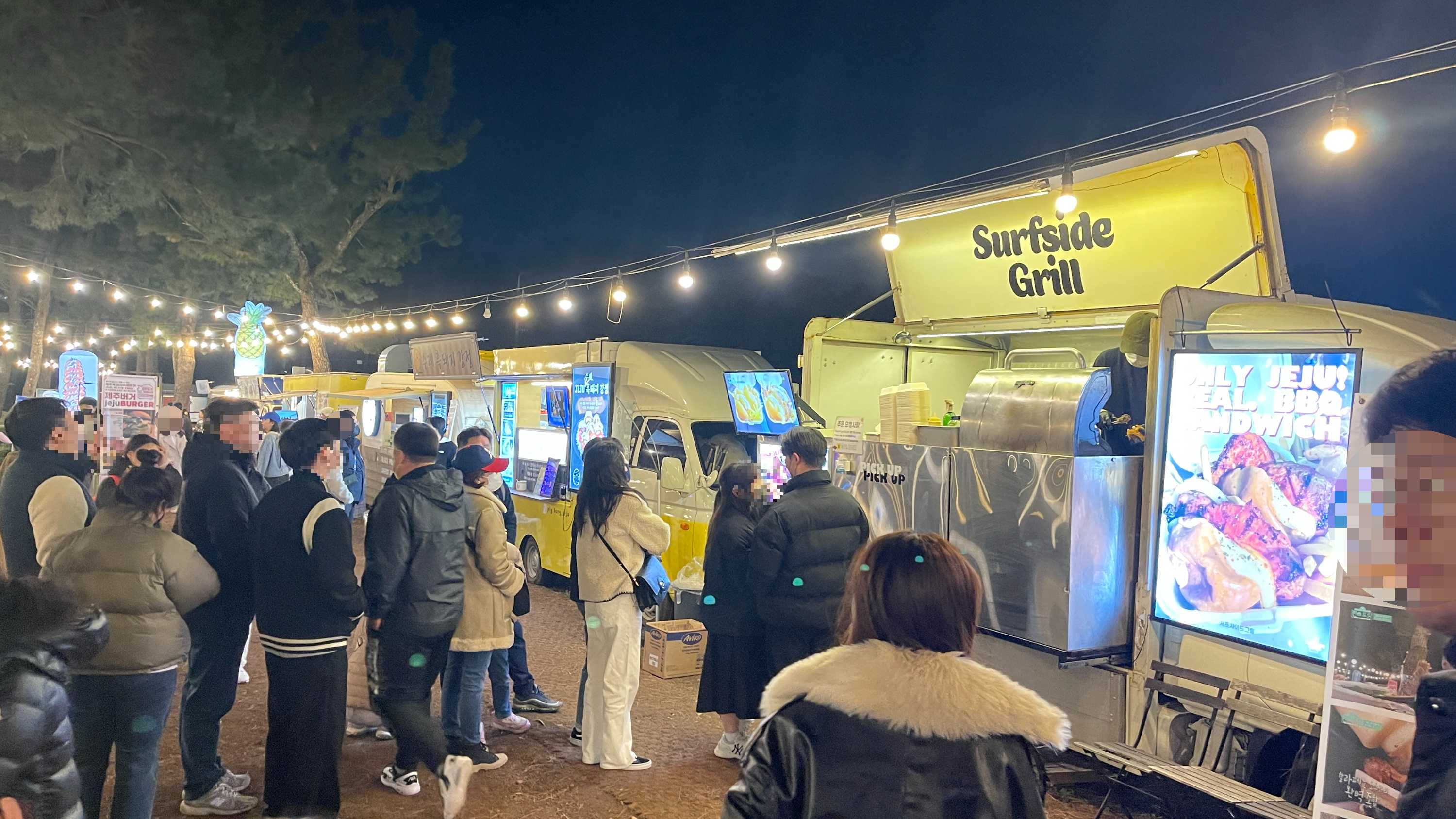 많은 사람들이 수목원 야시장에서 제주를 여행한 것 같았는데 오늘은 이 집만 줄이 길게 늘어서 있다. 펀레스토랑 현수막 한두번 본게 아닌데.. 왜 이런 푸드트럭은 처음보는 느낌일까요? 그래서인지 끌 수 없는 주문 덕분에 줄이 더 길어 보인다. 맛보고 신나는데 그럴 마음이 없으니 패스~