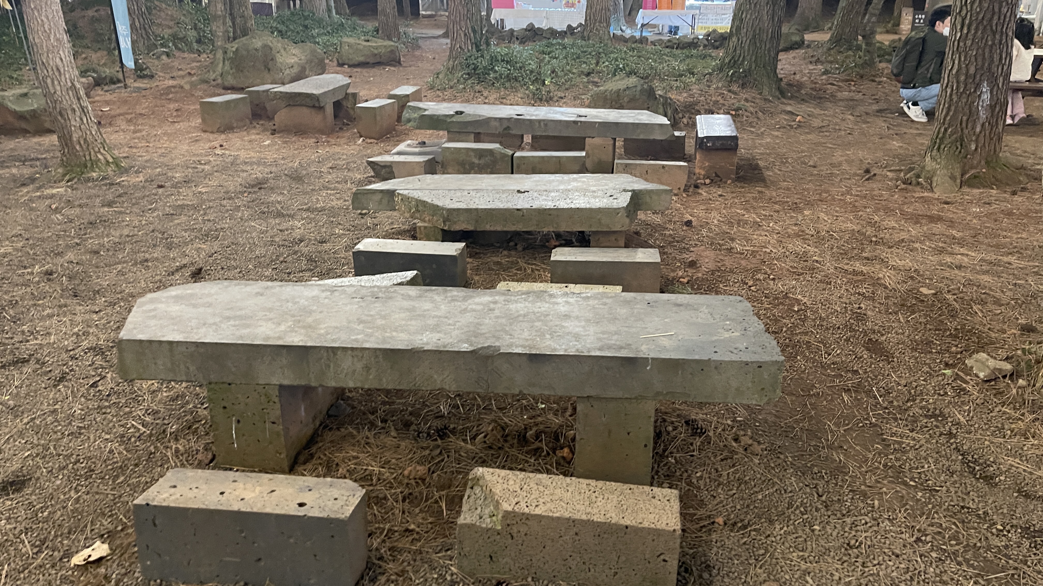 야경을 즐기며 테이크아웃을 하고 싶다면 이렇게 돌이나 나무 테이블에 앉아서 먹으면 된다. 그보다 사람이 많은 계절에 미리 장소를 예약하고 장보기를 하는 것이 좋다는 꿀팁!