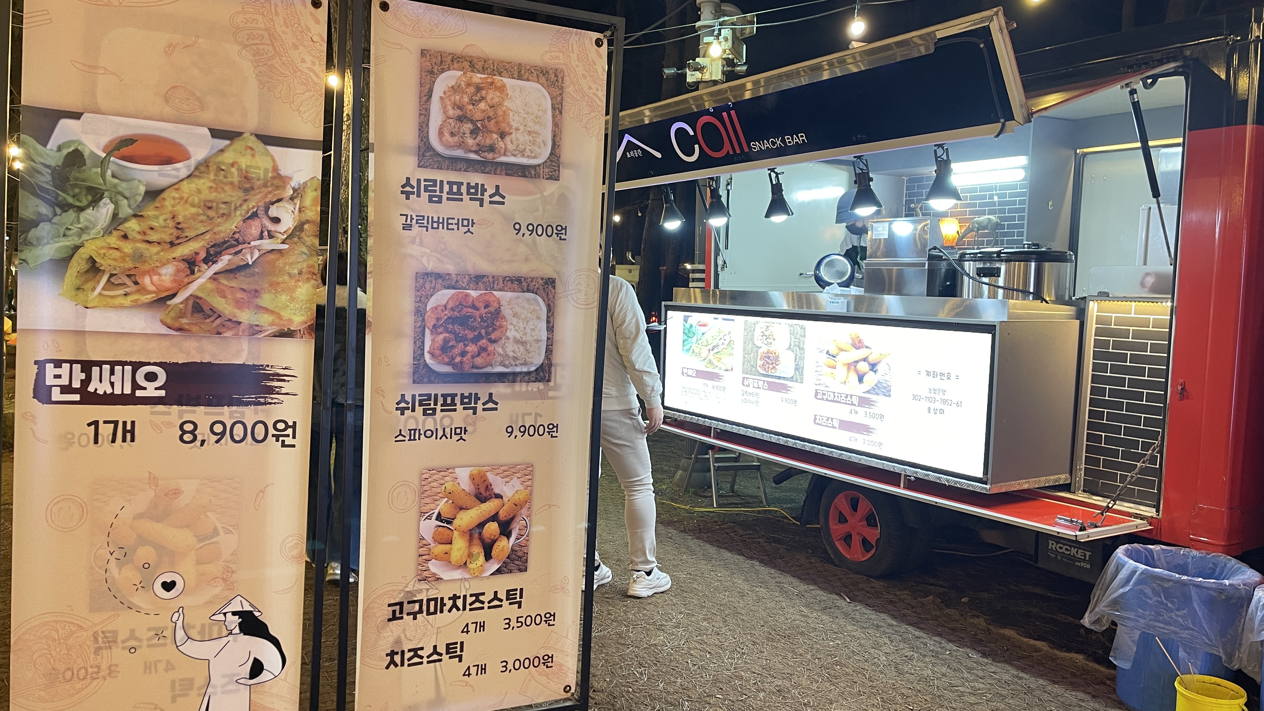 요즘 제주에는 새우구이를 파는 가게가 많아졌고, 푸드트럭 존에도 새우를 메인으로 내놓는 곳이 여럿 생겼다. Banh Xeo와 Shrimp Box가 제공됩니다.